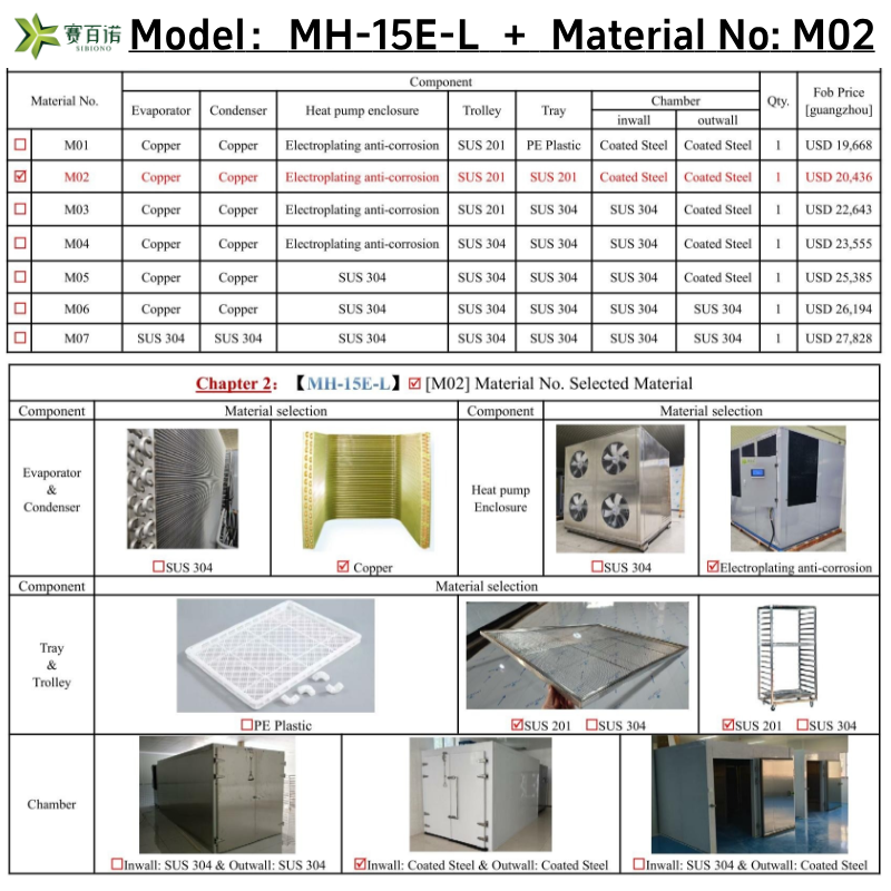 Specification of (MH series) Heat Pump Dryer